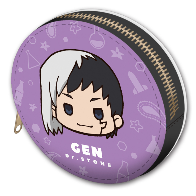 TVアニメ「Dr.STONE 」から、ちゅるん!としたデフォルメヘッド『ちゅるキャラ』を使用したレザー素材の丸型マルチケースが登場です。