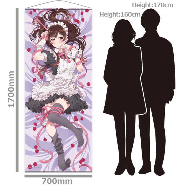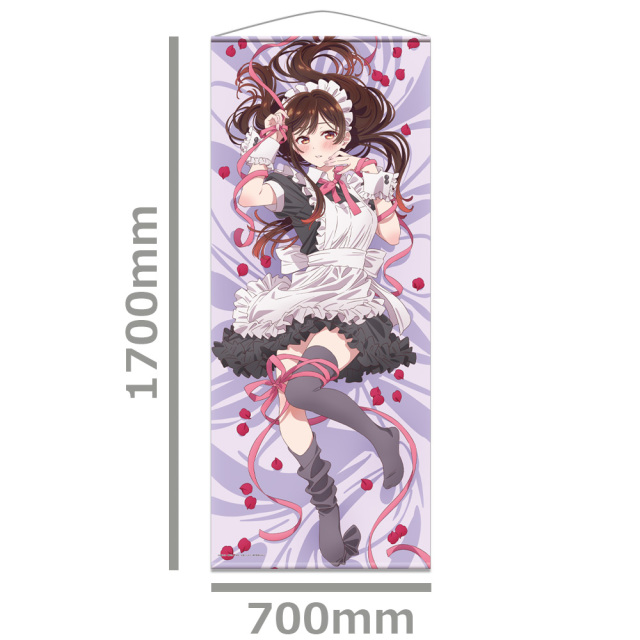 彼女、お借りしますから、新規描き下ろしイラストをプリントしたキャラクターほぼ等身大サイズの大きな壁掛けタペストリーが登場です。
